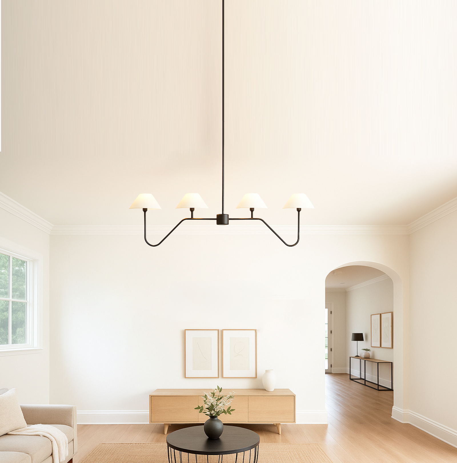 Illuminate your space with elegance using our stunning chandelier featuring four beautifully designed lamps. This exquisite lighting fixture not only enhances the aesthetic appeal of any room but also provides ample illumination, creating a warm and inviting atmosphere. Crafted with high-quality materials, it seamlessly blends modern sophistication with timeless charm, making it a perfect addition to dining rooms, living areas, or entryways. Elevate your home decor and experience the perfect balance of style and functionality with this captivating chandelier.