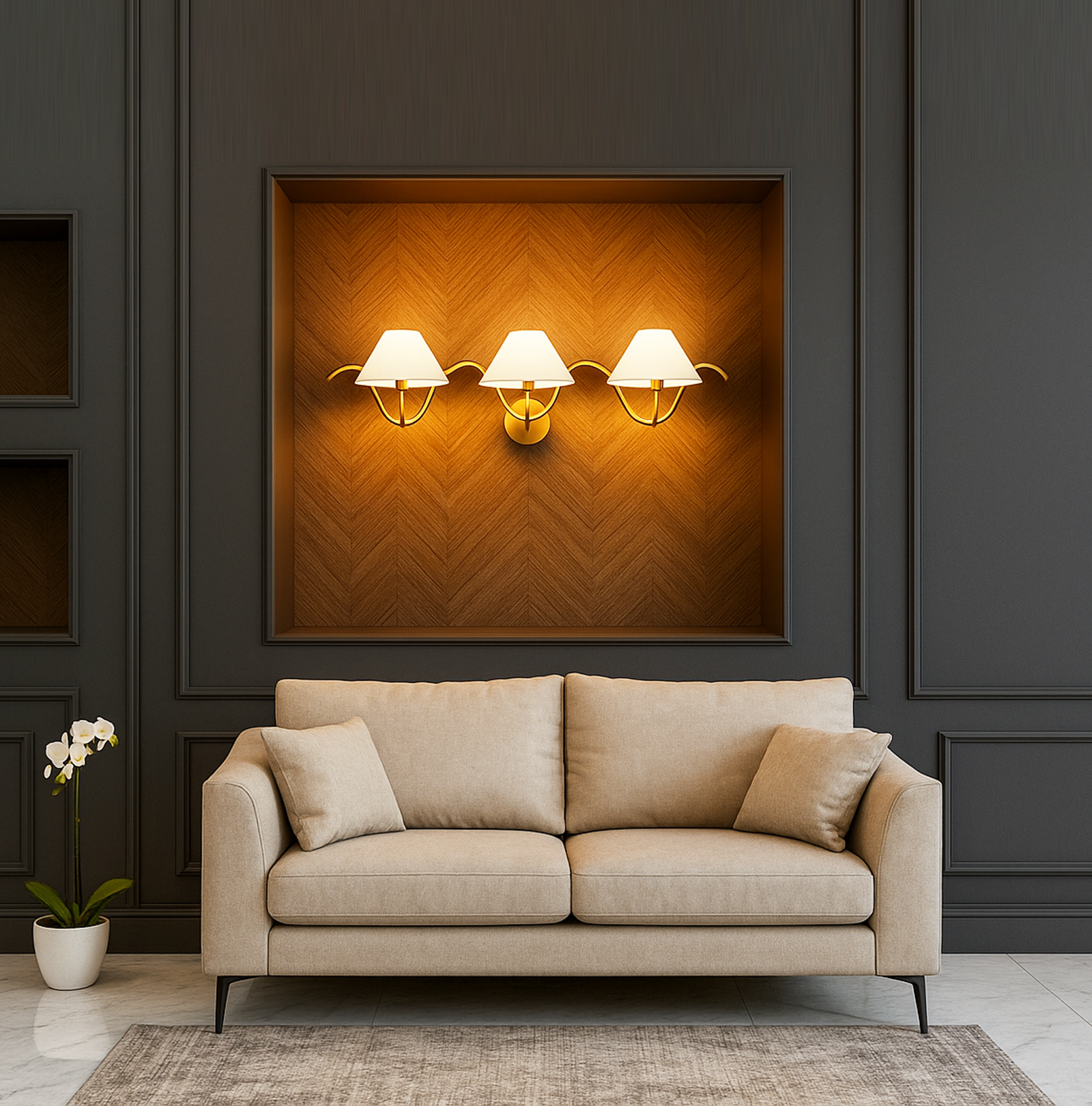 <h3 style="box-sizing: border-box; margin: 0px 0px 20px; font-weight: normal; line-height: 1.2em; font-size: 17px; font-family: sans-serif, Arial, Verdana, "Trebuchet MS"; padding: 0px; color: rgb(51, 51, 51); background-color: rgb(255, 255, 255);">Introducing our two Light Wall Lamp in a luxurious Light up your space with this elegantly designed wall lamp that combines style and functionality. The two lights provide a warm and inviting ambiance, perfect for lighting up any room. Whether you want to spruce up your living room, bedroom or hallway, this wall lamp will definitely add a touch of sophistication to your decor. With its sleek and modern design, it blends seamlessly into any interior style. Upgrade your lighting game with this beautiful wall lamp and create a cozy and inviting ambiance in your home.</h3>