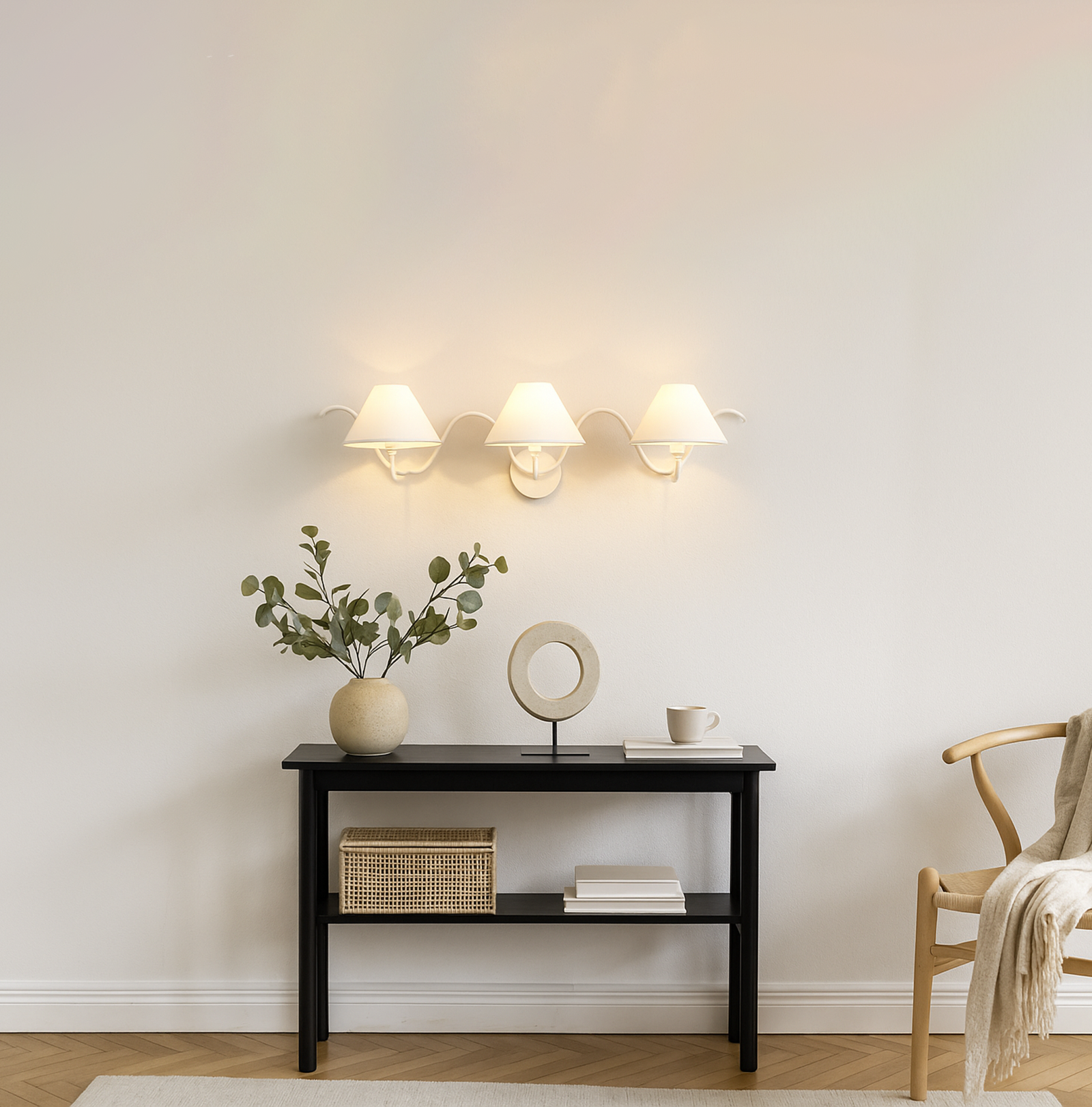 <h3 style="box-sizing: border-box; margin: 0px 0px 20px; font-weight: normal; line-height: 1.2em; font-size: 17px; font-family: sans-serif, Arial, Verdana, "Trebuchet MS"; padding: 0px; color: rgb(51, 51, 51); background-color: rgb(255, 255, 255);">Introducing our exquisite wall lamp, a stunning addition to your home decor. With its sleek black color finish, this lamp exudes a sense of contemporary elegance that will enhance any space. The striking design, reminiscent of a delicate two branches, adds a touch of nature-inspired beauty to your walls. Its unique shape, gives it a charming and playful aesthetic that will surely catch the eye of your guests.</h3>