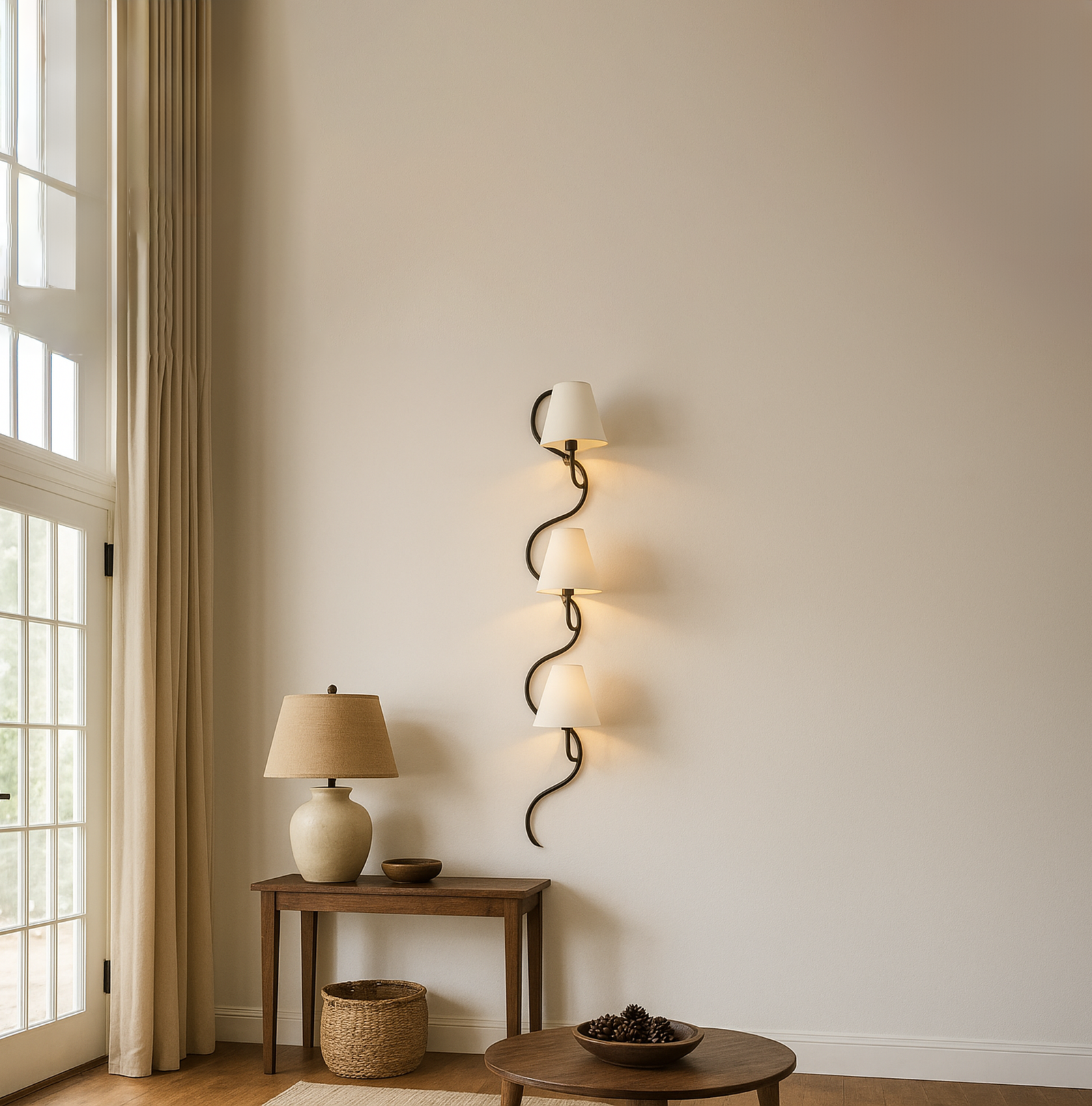 <h3><span style="color: rgb(34, 34, 34); font-family: "Graphik Webfont", -apple-system, "Helvetica Neue", "Droid Sans", Arial, "sans-serif"; font-size: 16px; letter-spacing: 0.16px;">Introducing our stunning three light wall lamp that resembles a tree branch. Lighting that is perfect for adding a beautiful touch to any living space. Constructed from stainless steel and featuring a shade for a warm glow, this vintage-inspired wall lamp is ideal for the bedroom, living room or even as a bedside light. Illuminate your walls with style and sophistication with this stunning three-light wall sconce.</span></h3>