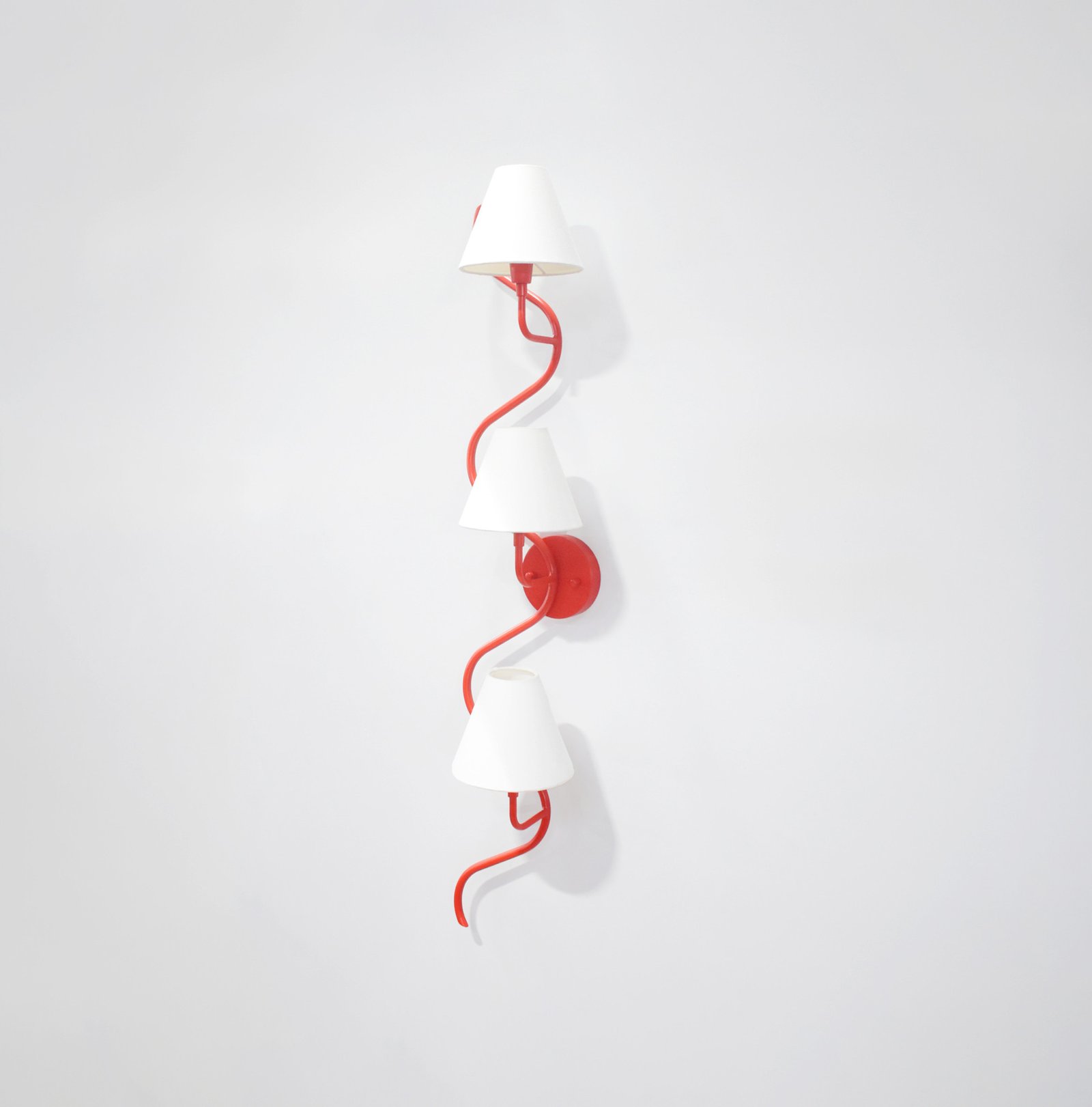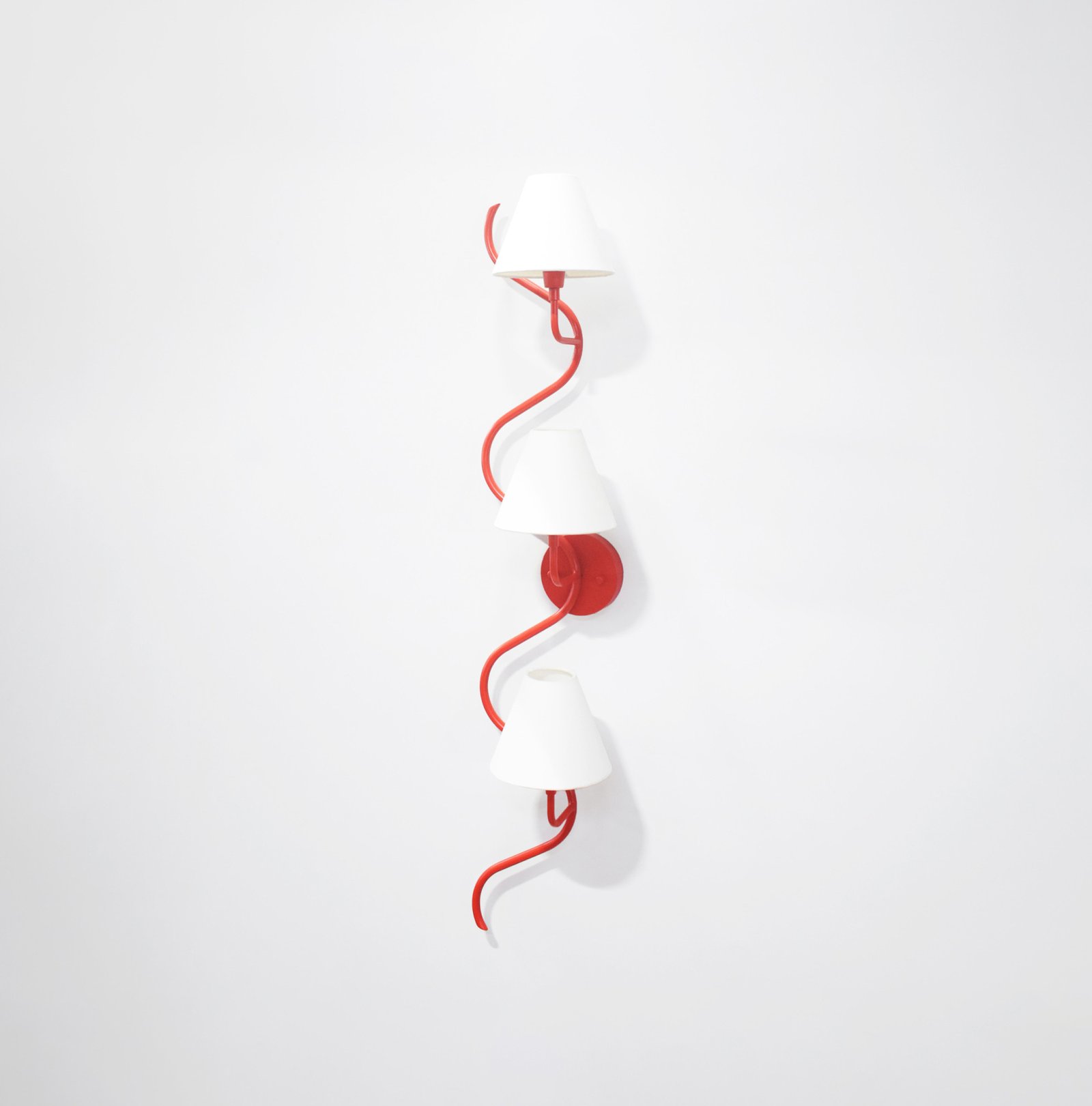 <h3 style="box-sizing: border-box; margin: 0px 0px 20px; font-weight: normal; line-height: 1.2em; font-size: 17px; font-family: sans-serif, Arial, Verdana, "Trebuchet MS"; padding: 0px; color: rgb(51, 51, 51); background-color: rgb(255, 255, 255);">Introducing our exquisite wall lamp, a stunning addition to your home decor. With its sleek red color finish, this lamp exudes a sense of contemporary elegance that will enhance any space. The striking design, reminiscent of a delicate one branch design, adds a touch of nature-inspired beauty to your walls. Its unique shape, gives it a charming and playful aesthetic that will surely catch the eye of your guests.</h3>