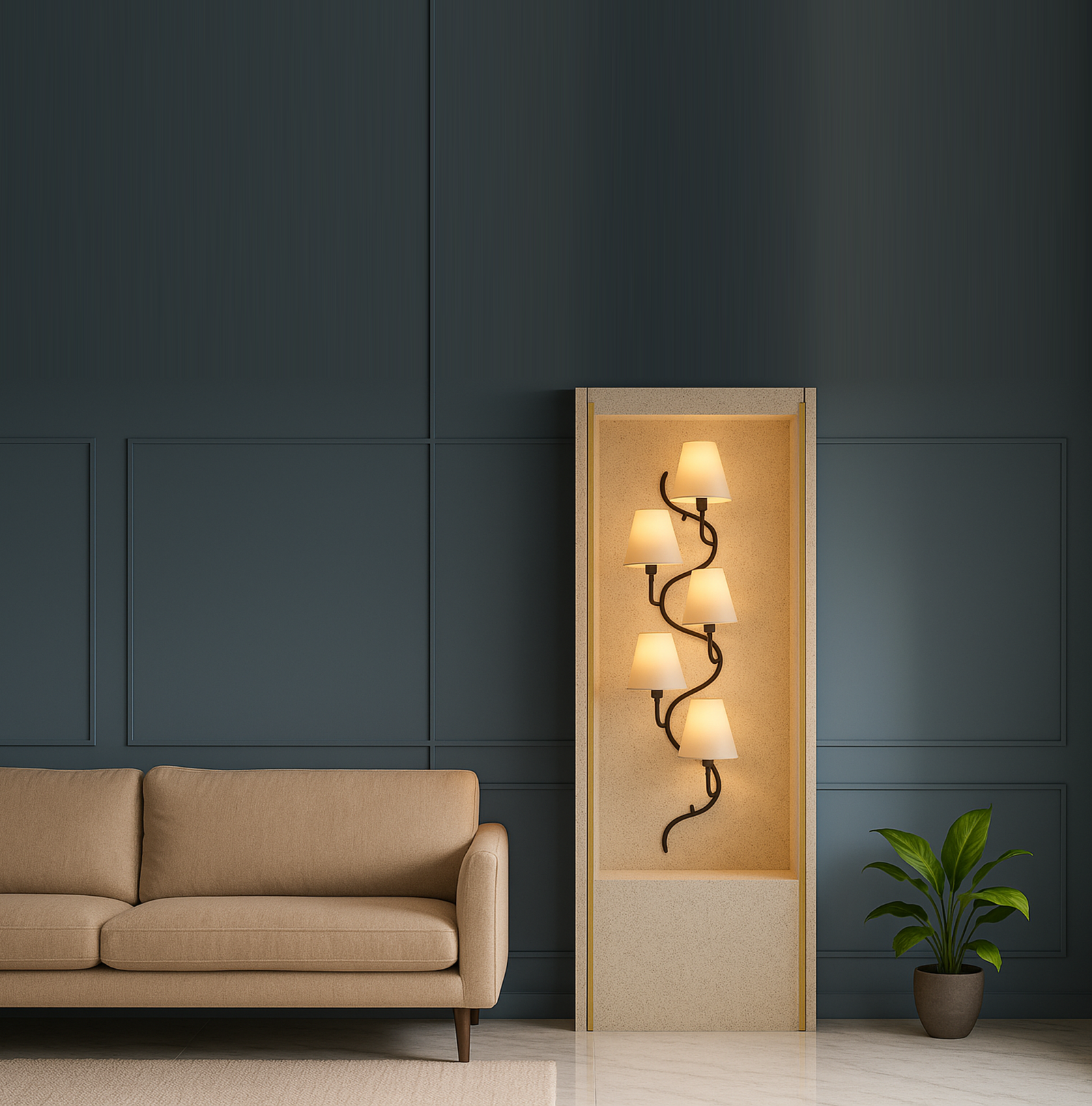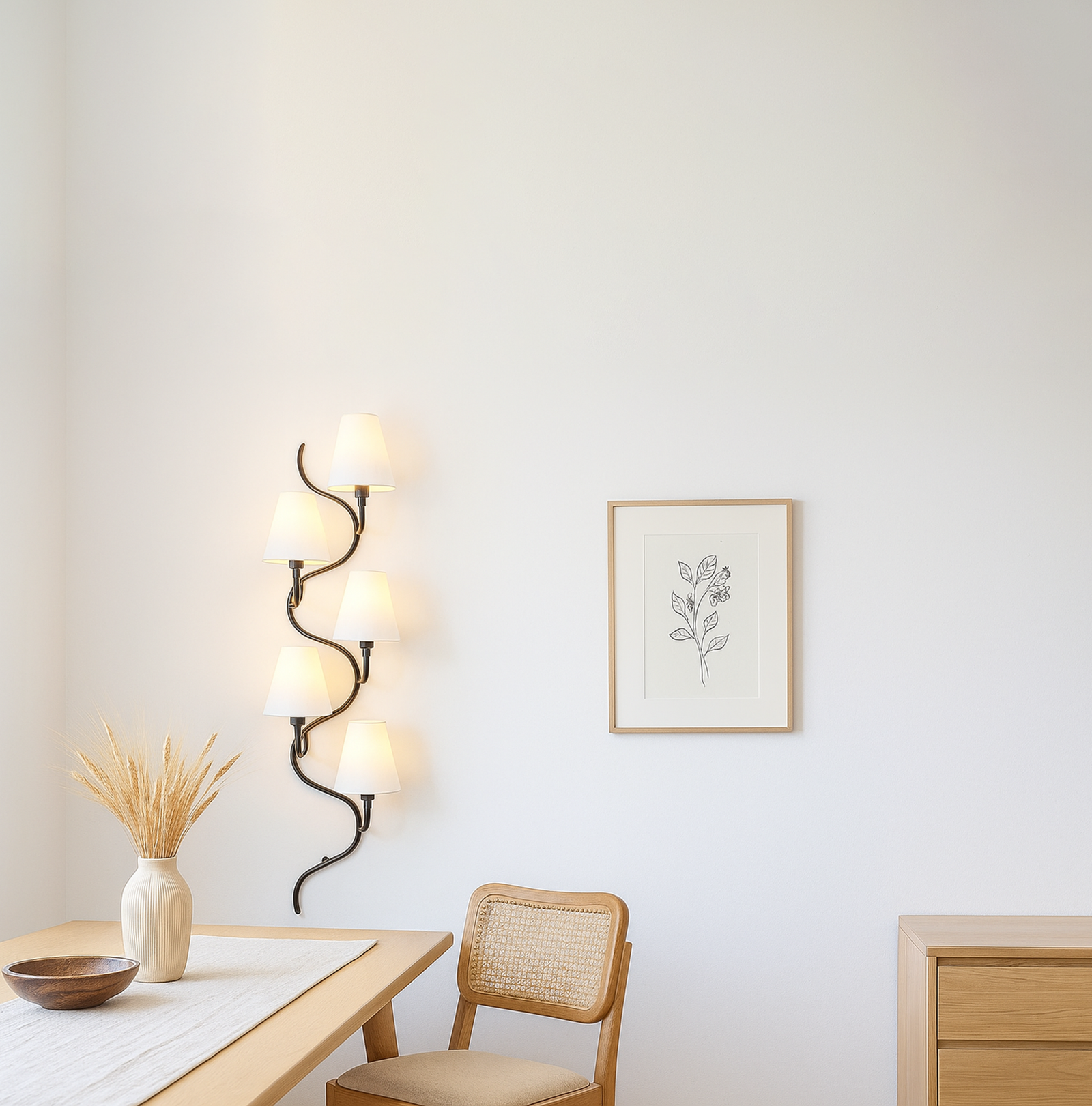 <h3 style="box-sizing: border-box; margin: 0px 0px 20px; font-weight: normal; line-height: 1.2em; font-size: 17px; font-family: sans-serif, Arial, Verdana, "Trebuchet MS"; padding: 0px; color: rgb(51, 51, 51); background-color: rgb(255, 255, 255);">Introducing our exquisite wall lamp, a stunning addition to your home decor. With its sleek black color finish, this lamp exudes a sense of contemporary elegance that will enhance any space. The striking design, reminiscent of a delicate one branch design, adds a touch of nature-inspired beauty to your walls. Its unique shape, gives it a charming and playful aesthetic that will surely catch the eye of your guests.</h3>