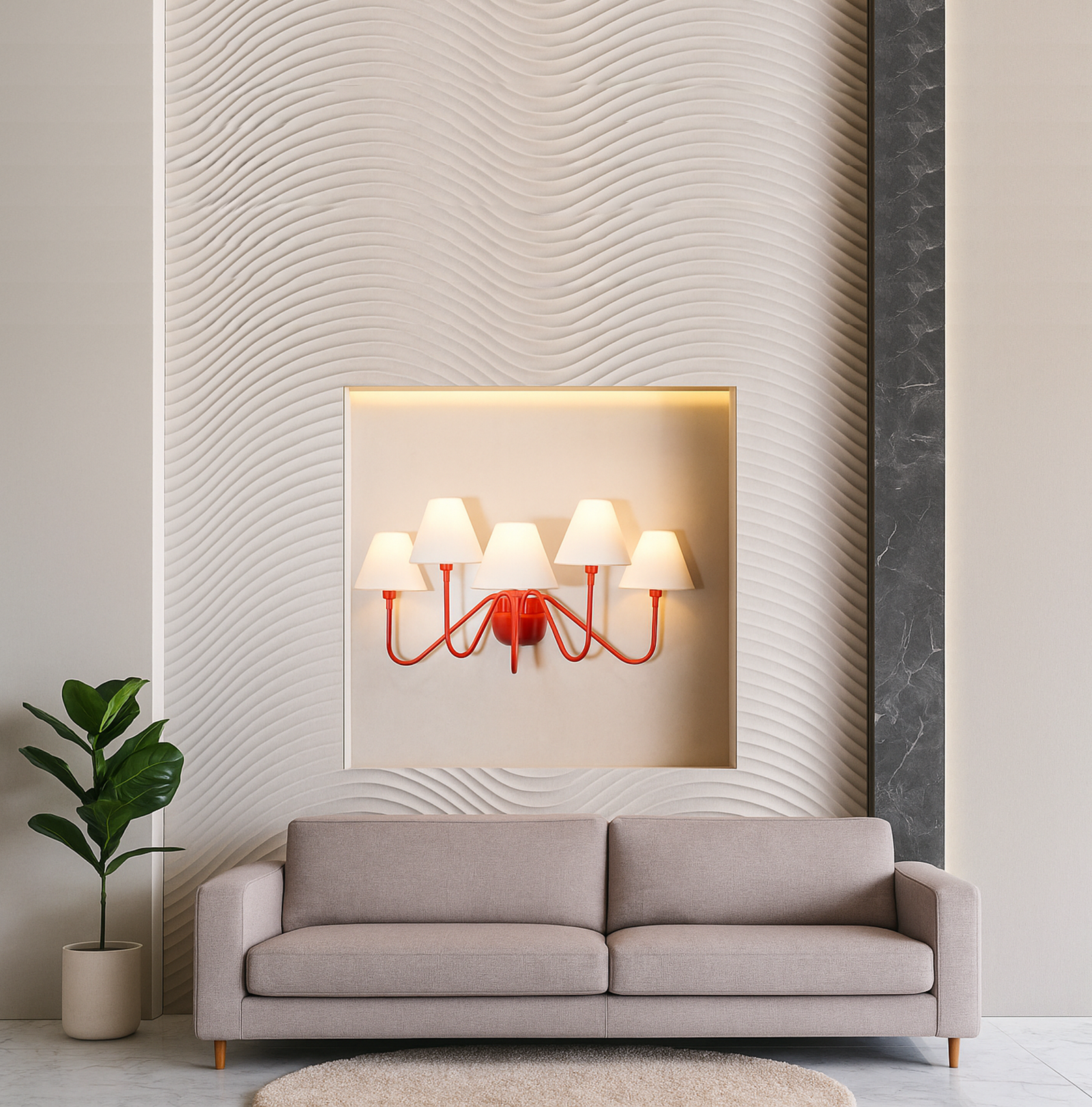 <h3 style="box-sizing: border-box; margin: 0px 0px 20px; line-height: 1.5em; font-size: 17px; font-family: "Open Sans", sans-serif; padding: 0px; color: rgb(40, 40, 40); background-color: rgb(255, 255, 255);"><span style="box-sizing: border-box;"><span style="box-sizing: border-box; color: rgb(34, 34, 34); font-family: "Graphik Webfont", -apple-system, "Helvetica Neue", "Droid Sans", Arial, "sans-serif"; font-size: 16px; letter-spacing: 0.16px;">Introducing our modern RED 3 Lights Wall Lamp, a stunning addition to any space. This wall lamp combines elegance and functionality, providing both ambient and task lighting. The sleek design features five lights, creating a warm and inviting atmosphere. Crafted with attention to detail, the gold finish adds a touch of sophistication to any room. Illuminate your space with style and grace with our modern gold wall lamp.</span></span></h3>