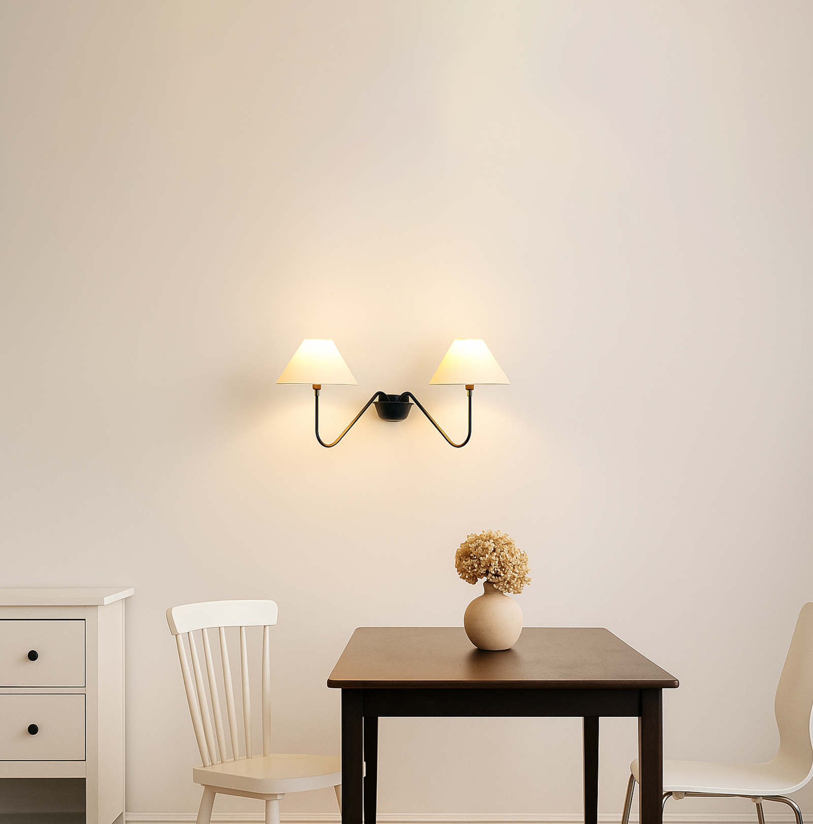 <h3 style="font-weight: normal; line-height: 1.2em; color: rgb(51, 51, 51); font-family: sans-serif, Arial, Verdana, "Trebuchet MS"; background-color: rgb(255, 255, 255);">Introducing our exquisite wall lamp, a stunning addition to your home decor. With its sleek Matte black color finish, this lamp exudes a sense of contemporary elegance that will enhance any space. The striking design, reminiscent of a delicate two branches, adds a touch of nature-inspired beauty to your walls. Its unique shape, gives it a charming and playful aesthetic that will surely catch the eye of your guests.</h3>