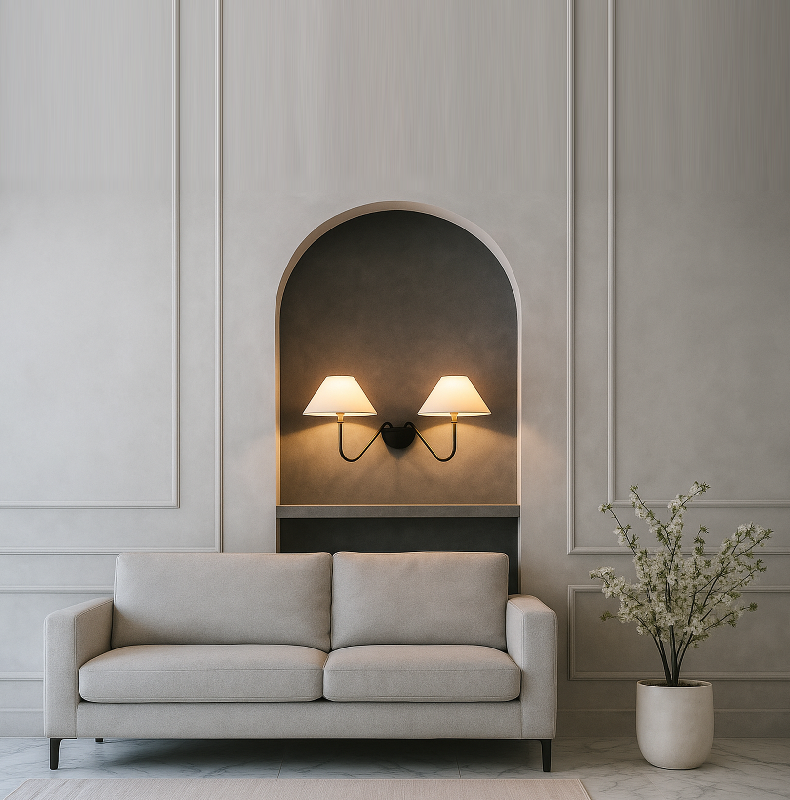 <h3 style="font-weight: normal; line-height: 1.2em; color: rgb(51, 51, 51); font-family: sans-serif, Arial, Verdana, "Trebuchet MS";">Introducing our exquisite wall lamp, a stunning addition to your home decor. With its sleek Golden color finish, this lamp exudes a sense of contemporary elegance that will enhance any space. The striking design, reminiscent of a delicate two branches, adds a touch of nature-inspired beauty to your walls. Its unique shape, gives it a charming and playful aesthetic that will surely catch the eye of your guests.</h3>