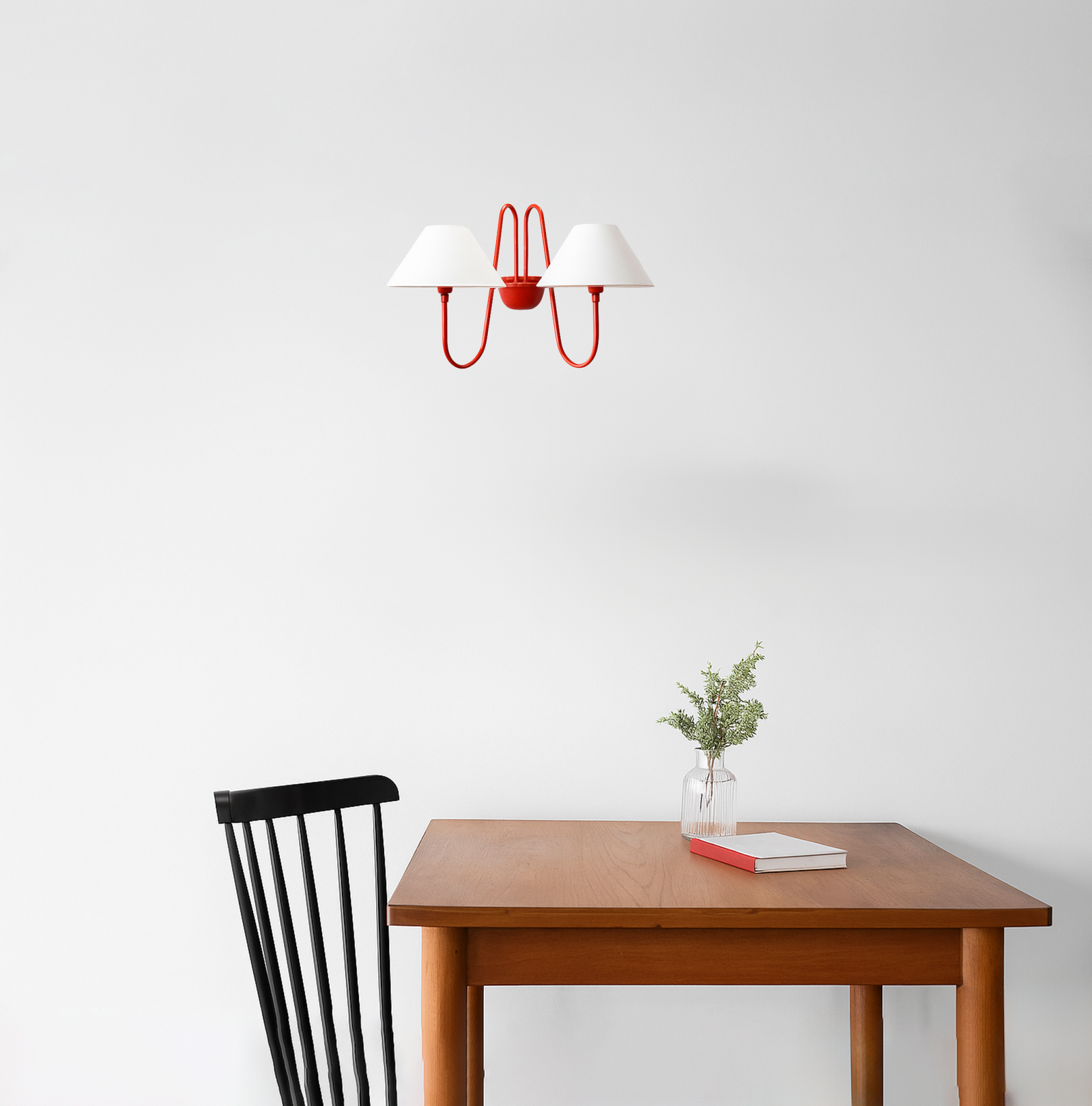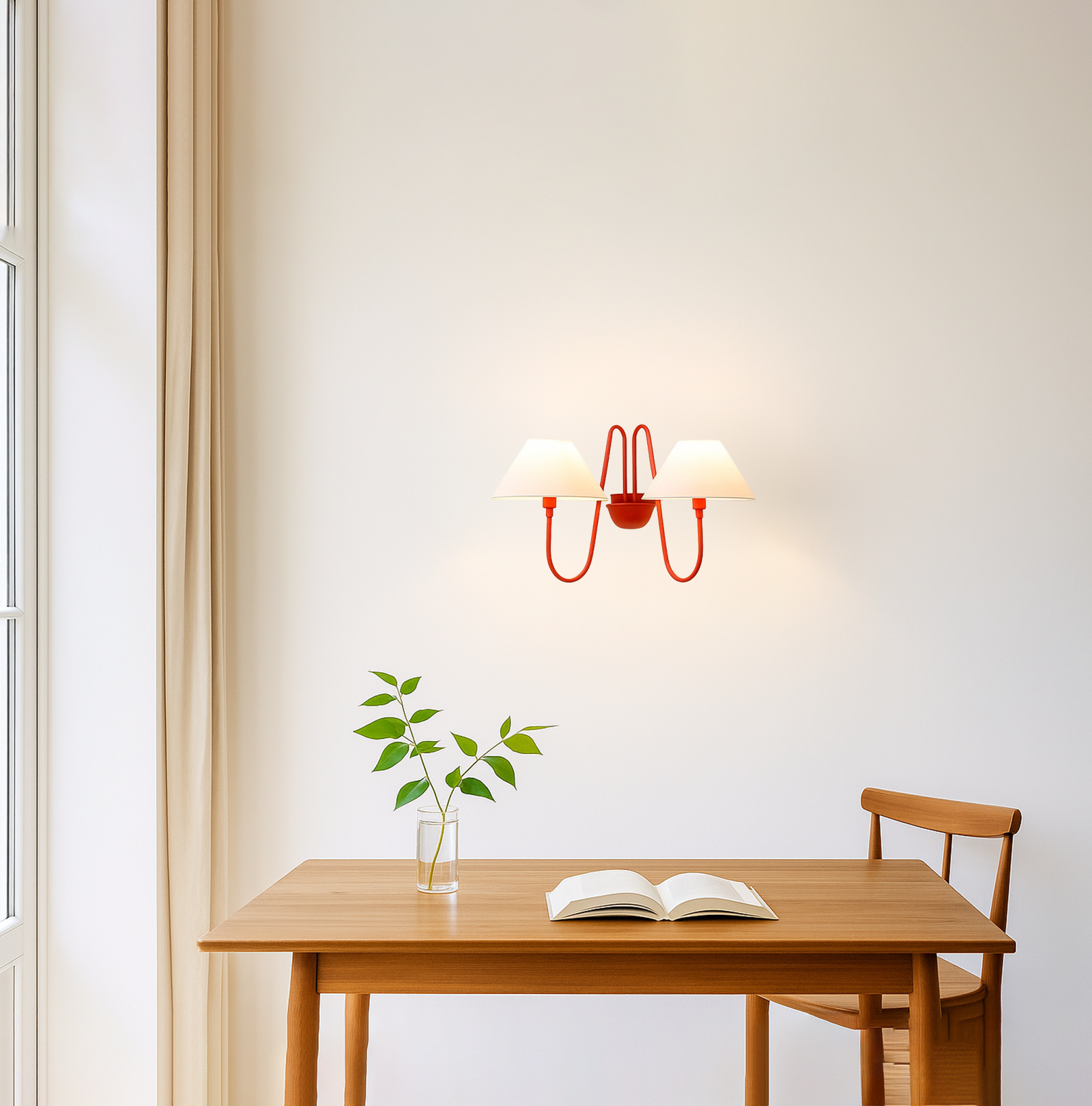 Introducing our exquisite wall lamp, a stunning addition to your home decor. With its sleek red color finish, this lamp exudes a sense of contemporary elegance that will enhance any space. The striking design, reminiscent of a delicate two branches, adds a touch of nature-inspired beauty to your walls. Its unique shape, gives it a charming and playful aesthetic that will surely catch the eye of your guests.