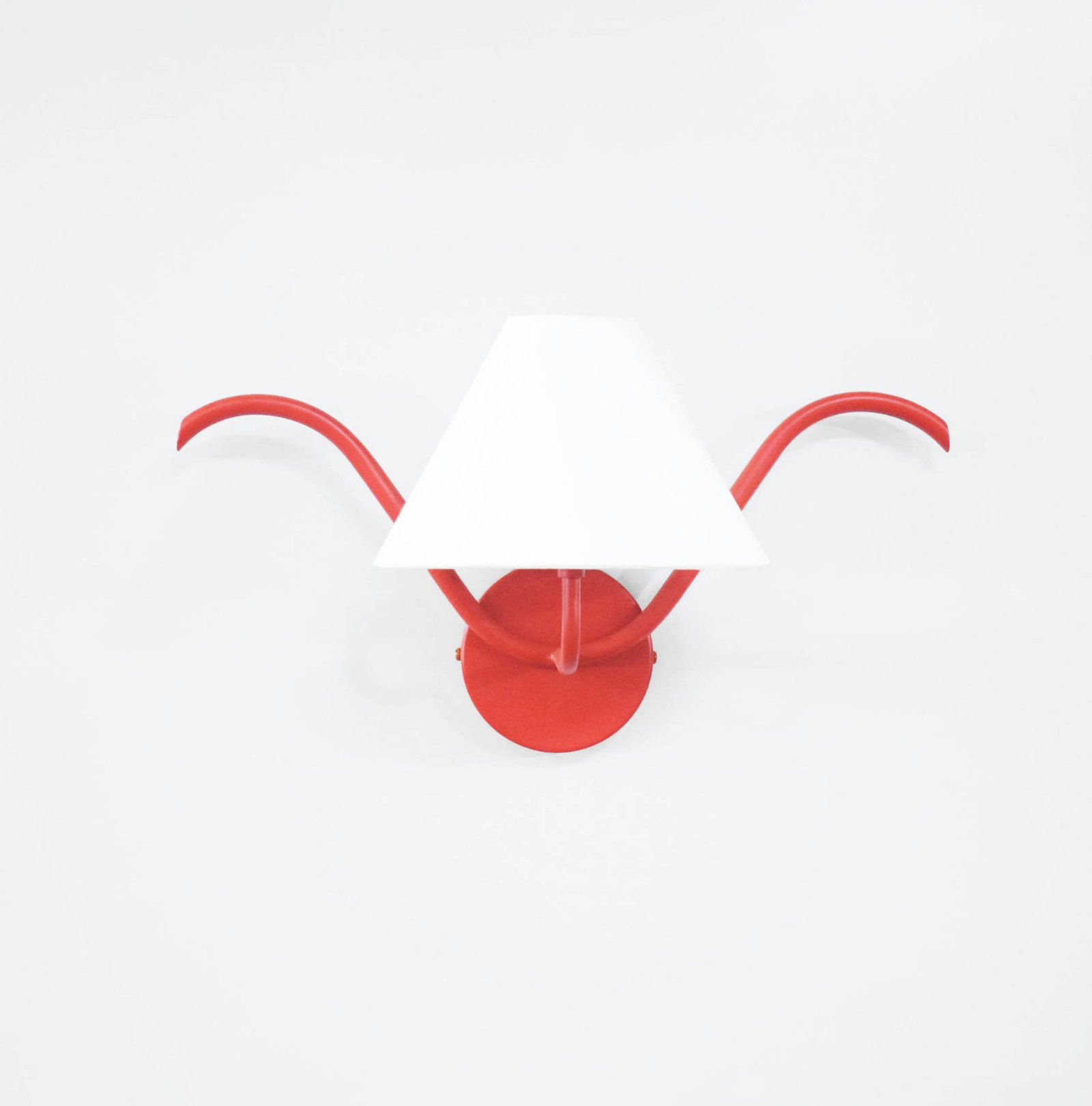 Introducing our exquisite wall lamp, a stunning addition to your home decor. With its sleek Red color finish, this lamp exudes a sense of contemporary elegance that will enhance any space. The striking design, reminiscent of a delicate one branch design, adds a touch of nature-inspired beauty to your walls. Its unique shape, gives it a charming and playful aesthetic that will surely catch the eye of your guests.