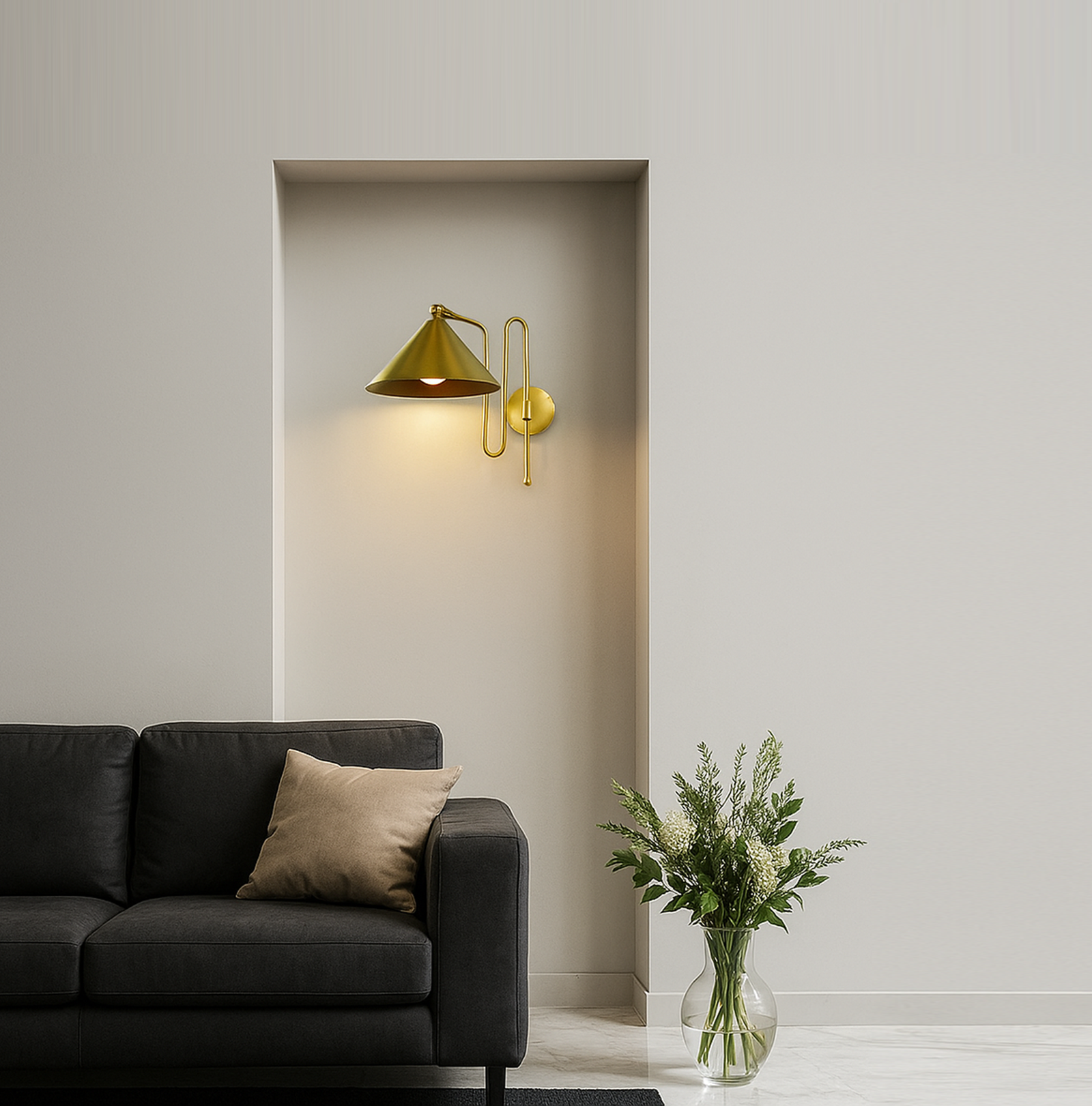 <h3 style="font-weight: normal; line-height: 1.2em; color: rgb(51, 51, 51); font-family: sans-serif, Arial, Verdana, "Trebuchet MS";">Introducing our exquisite wall lamp, a stunning addition to your home decor. With its sleek Golden color finish, this lamp exudes a sense of contemporary elegance that will enhance any space. The striking design, reminiscent of a delicate two branches, adds a touch of nature-inspired beauty to your walls. Its unique shape, gives it a charming and playful aesthetic that will surely catch the eye of your guests.</h3>