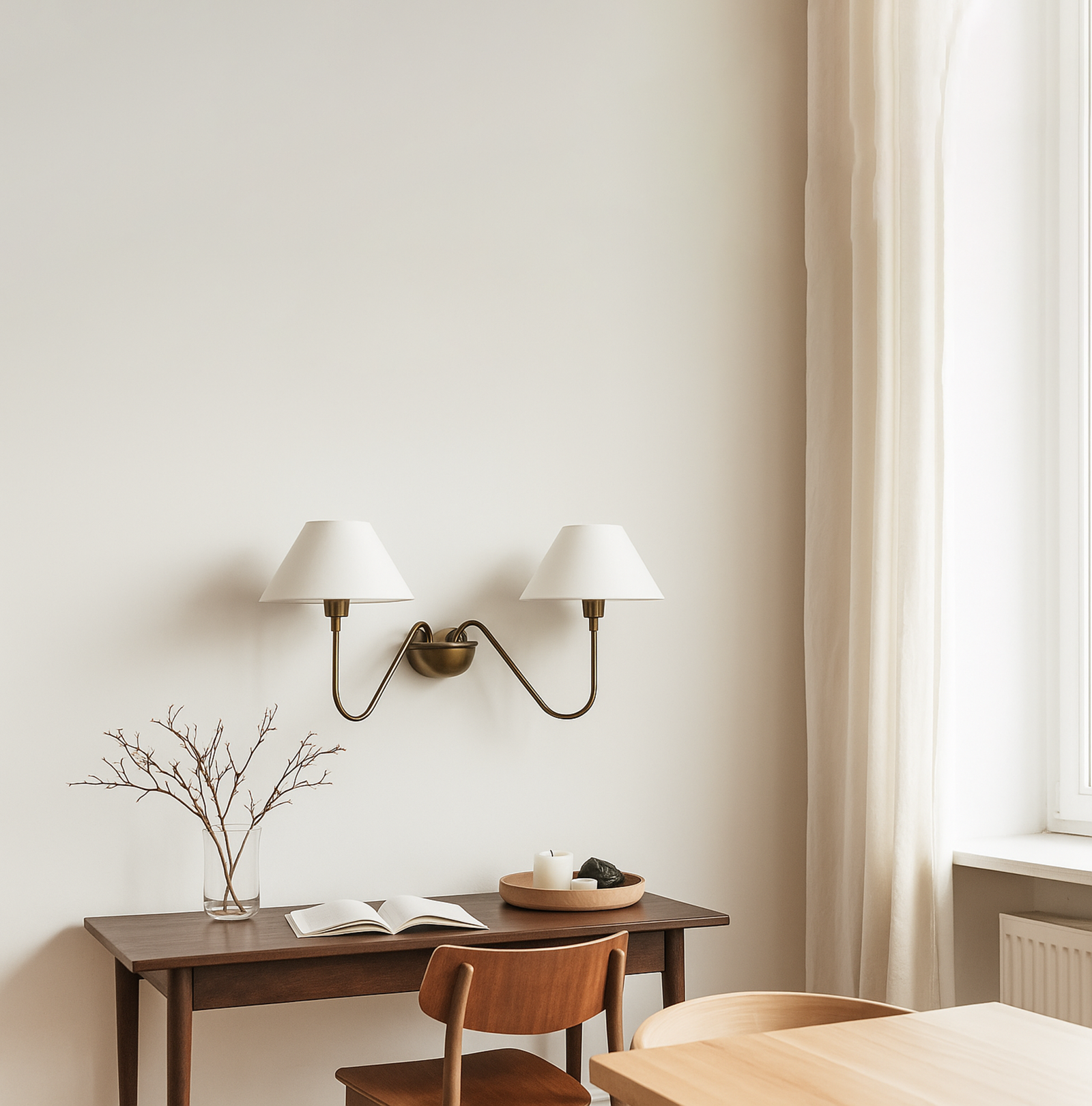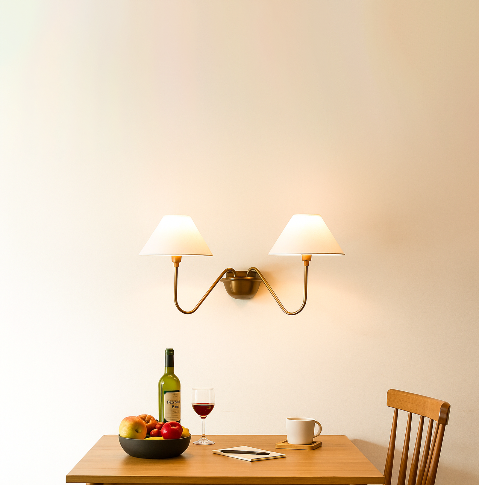 <h3 style="font-weight: normal; line-height: 1.2em; color: rgb(51, 51, 51); font-family: sans-serif, Arial, Verdana, "Trebuchet MS";">Introducing our exquisite wall lamp, a stunning addition to your home decor. With its sleek Golden color finish, this lamp exudes a sense of contemporary elegance that will enhance any space. The striking design, reminiscent of a delicate two branches, adds a touch of nature-inspired beauty to your walls. Its unique shape, gives it a charming and playful aesthetic that will surely catch the eye of your guests.</h3>