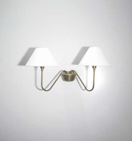 Brown Brass Double Wall Sconce Lamp: Steel, Aluminum Accent Light Brown