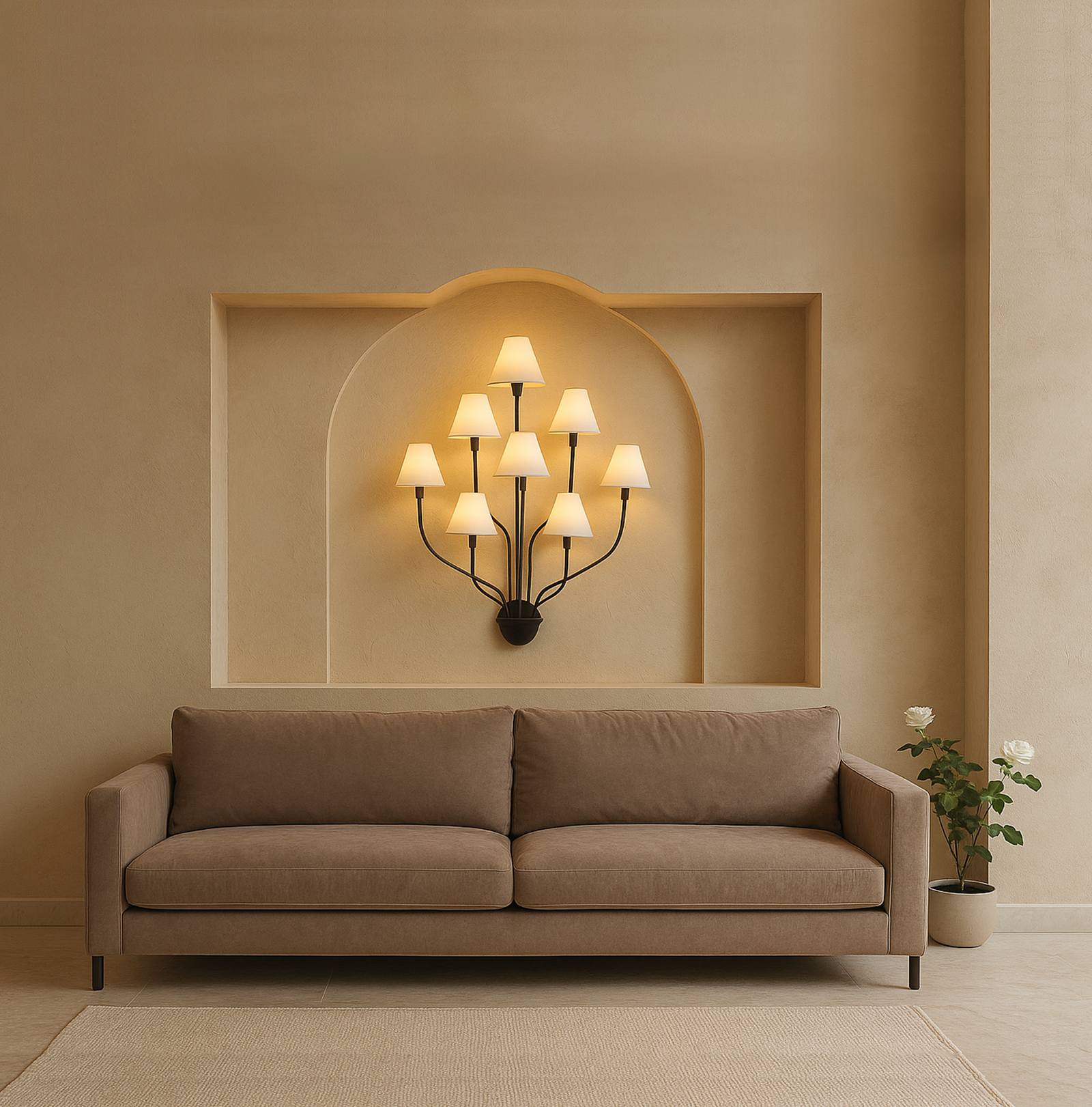 Illuminate your space with our stunning wall-mounted lamp featuring five elegantly designed light fixtures. This versatile lighting solution not only enhances the ambiance of any room but also serves as a striking decorative element. Crafted with high-quality materials, each lamp provides a warm, inviting glow, making it perfect for living rooms, hallways, or bedrooms. Its sleek design seamlessly integrates into various decor styles, ensuring that your home remains stylish and well-lit. Upgrade your lighting today and experience the perfect blend of functionality and aesthetics.